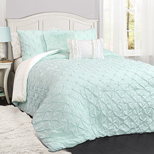 Lush Decor Ravello Shabby Chic Style Pintuck Light Aqua 5 Piece Comforter Set with Pillow Shams Full/Queen: Home & Kitchen