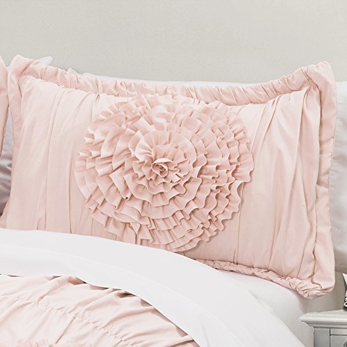 Lush Decor Serena Comforter Pink Blush Ruched Flower 3 Piece Set - King: Home & Kitchen