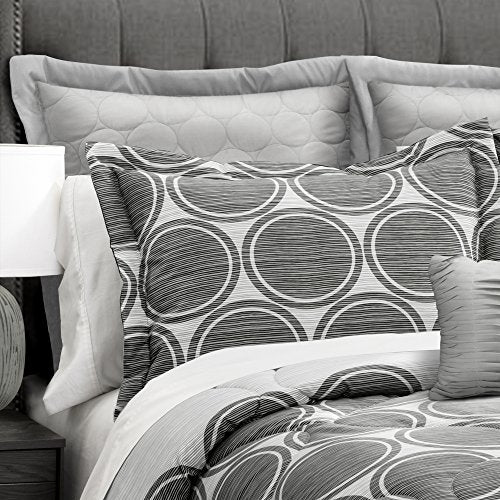 Lush Decor Textured Circle 6 Piece Comforter Set, Gray, Full/Queen: Home & Kitchen